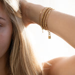 Everything we sell is plated with 14k Gold PVD. 14k has a lighter tone than 18k or 24k—it’s the look we love, and it’s what our customers prefer.