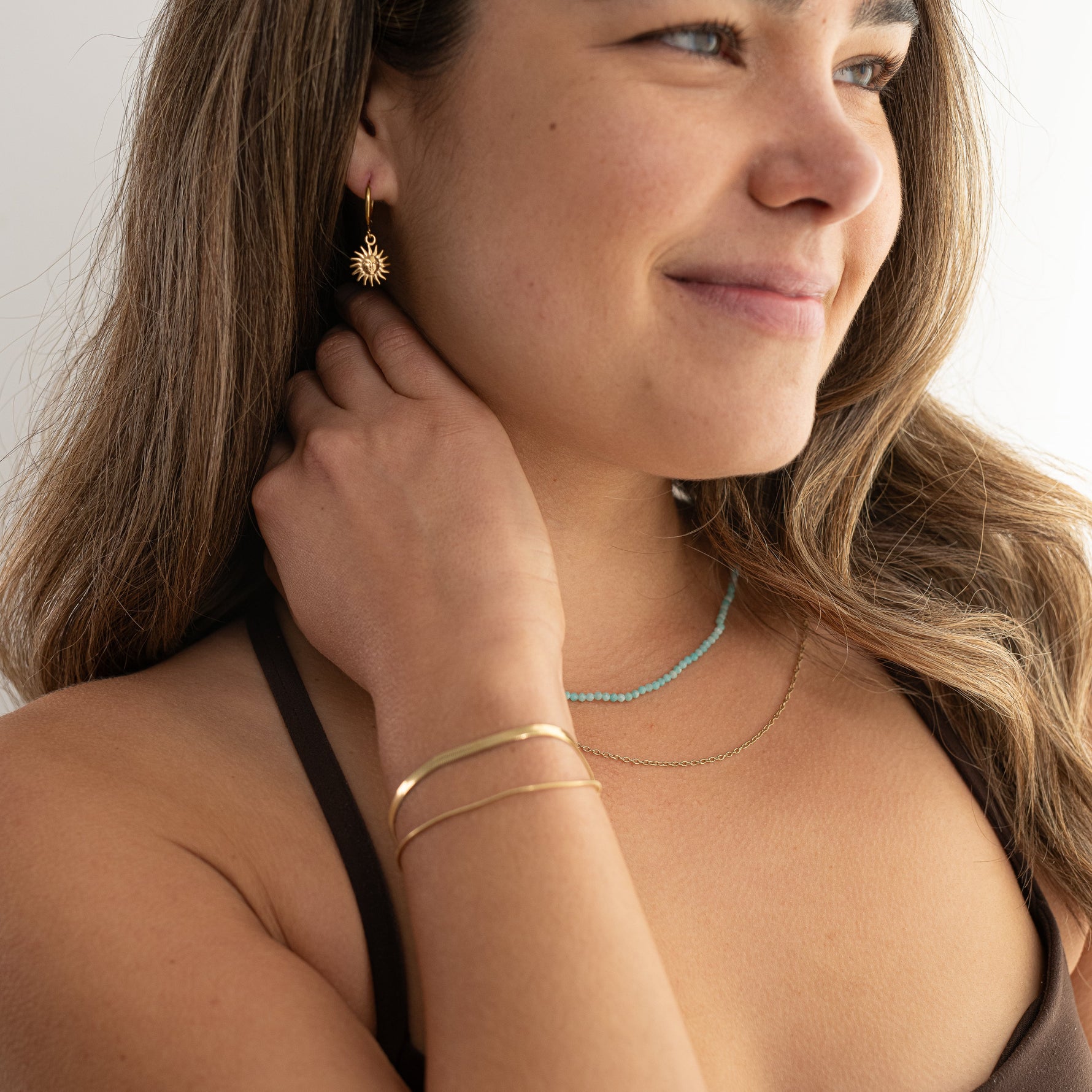 Everything we sell is plated with 14k Gold PVD. 14k has a lighter tone than 18k or 24k—it’s the look we love, and it’s what our customers prefer.