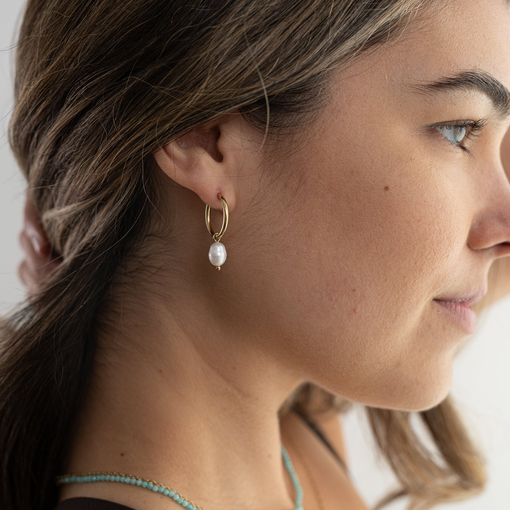 A classic hoop featuring a gorgeous freshwater pearl drop for a dainty, sophisticated look.