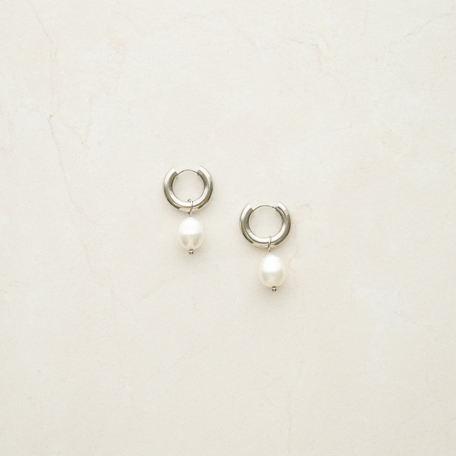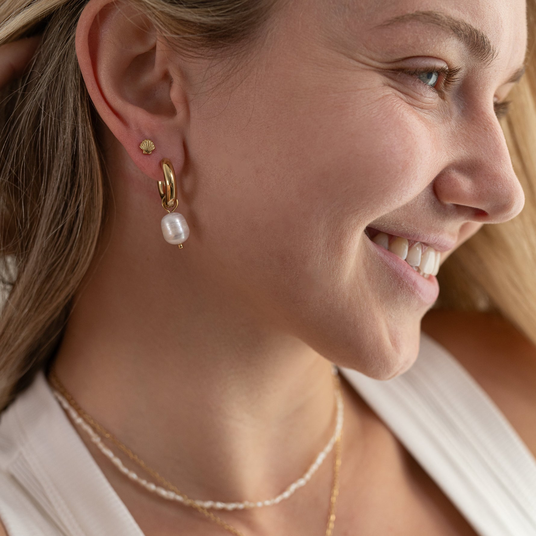 The Poppy Pearl Huggies feature a gorgeous freshwater pearl drop for a bold, sophisticated vibe.