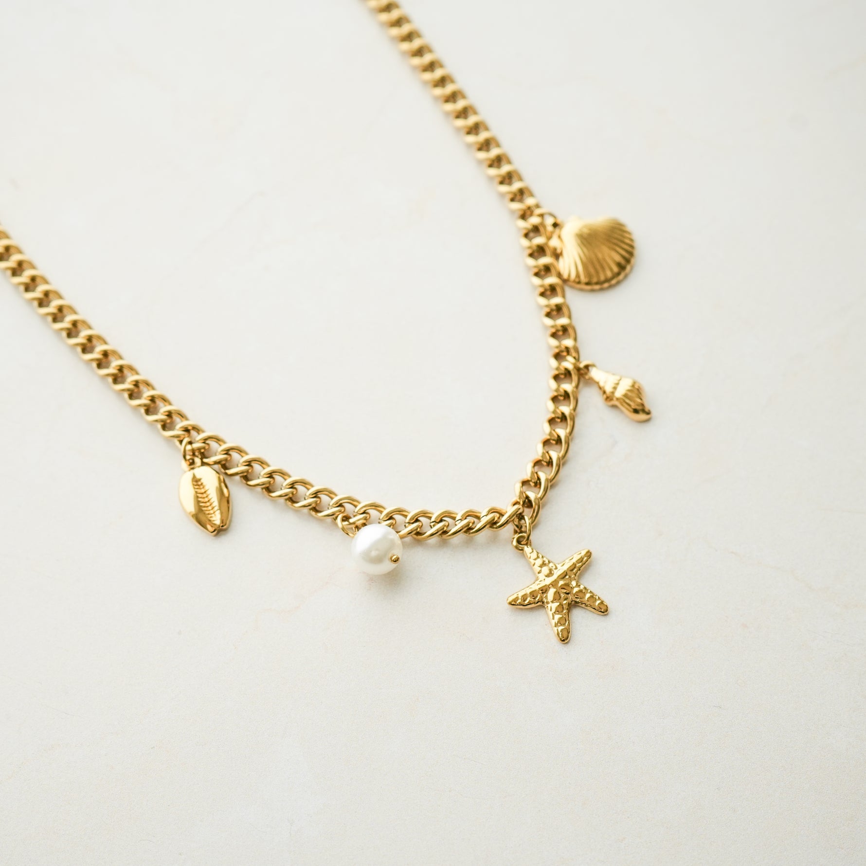 Bring the beach to your everyday with this chunky chain necklace, featuring delicate shell charms for a playful, sun-kissed touch.