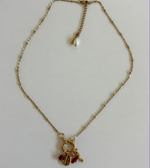 Bring a pop of color to your look with this ocean-inspired necklace, featuring vibrant red beads and charming seahorse and shell details.