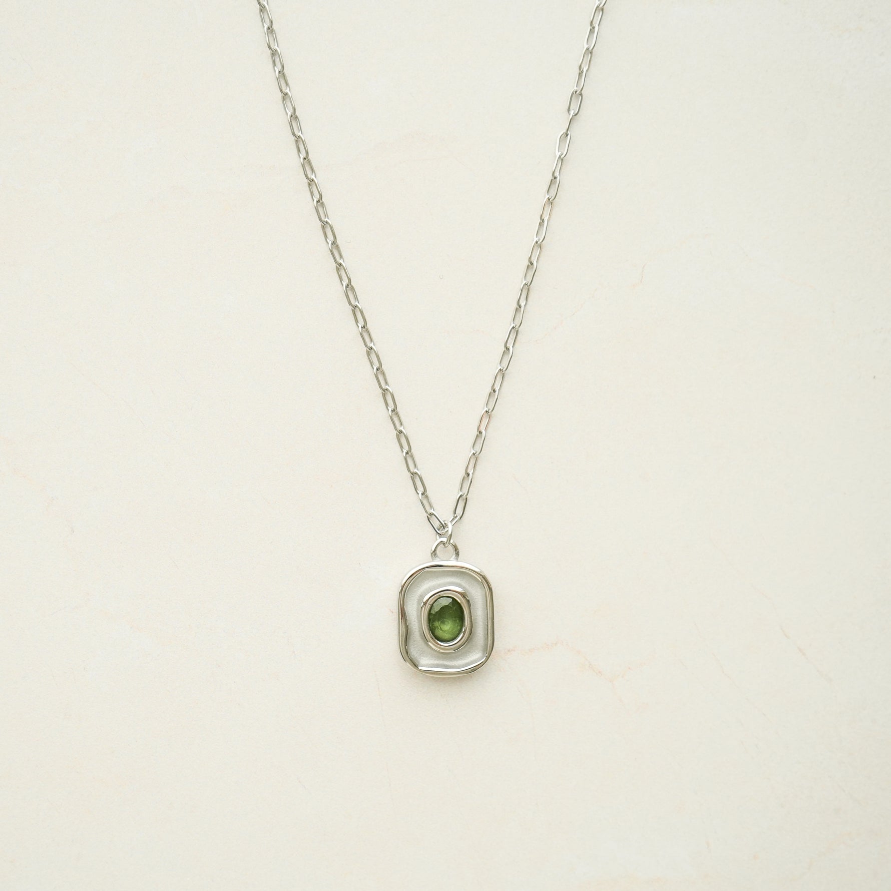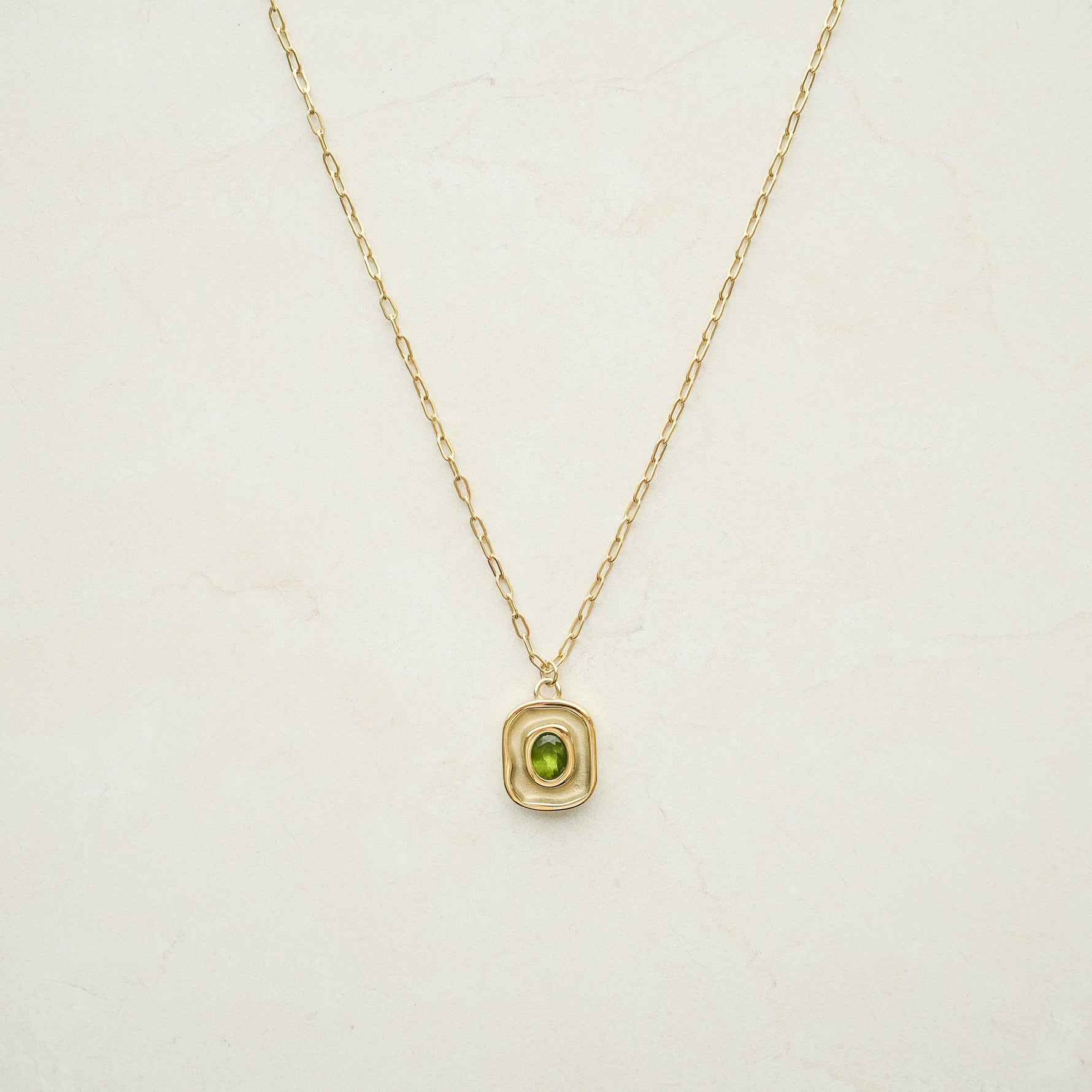A tiny paperclip chain meets a simple green stone pendant for an easy pop of color. The Verde Pendant Necklace layers seamlessly with your go-to pieces.